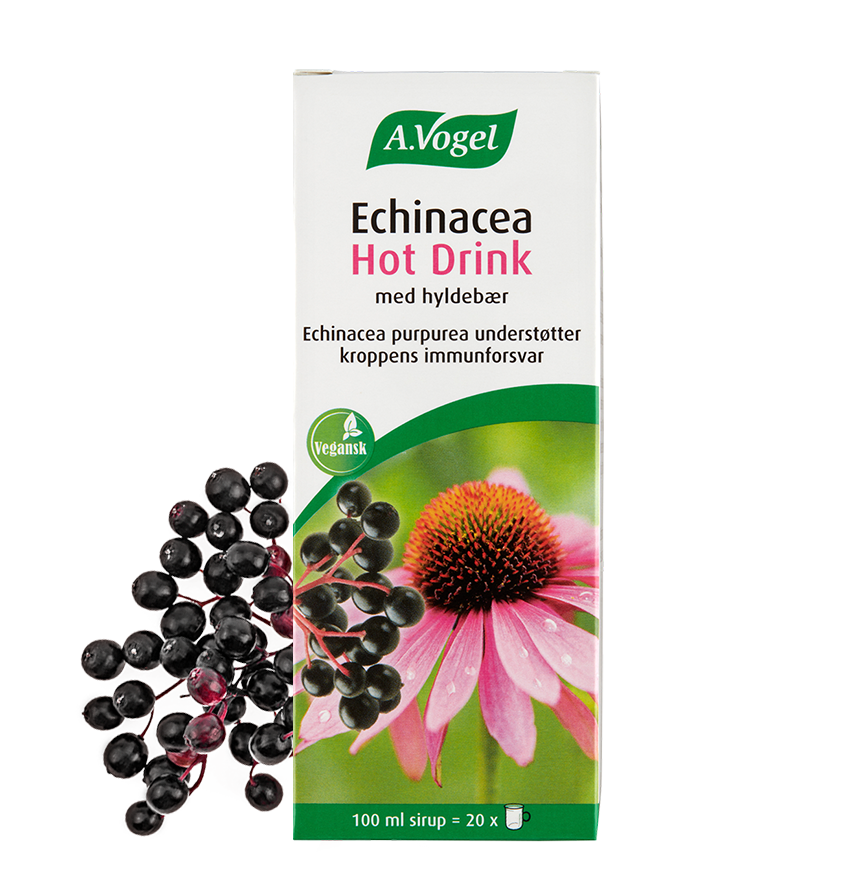 Det er derfor en rigtig god idé at støtte immunforsvaret, f.eks. i form af et krus med dejlig varm Echinacea Hot Drink. Echinacea Hot Drink er et kosttilskud med en dejlig blanding af hyldebær og Echinacea Purpurea, som medvirker til at holde immunforsvaret sundt og velfungerende.